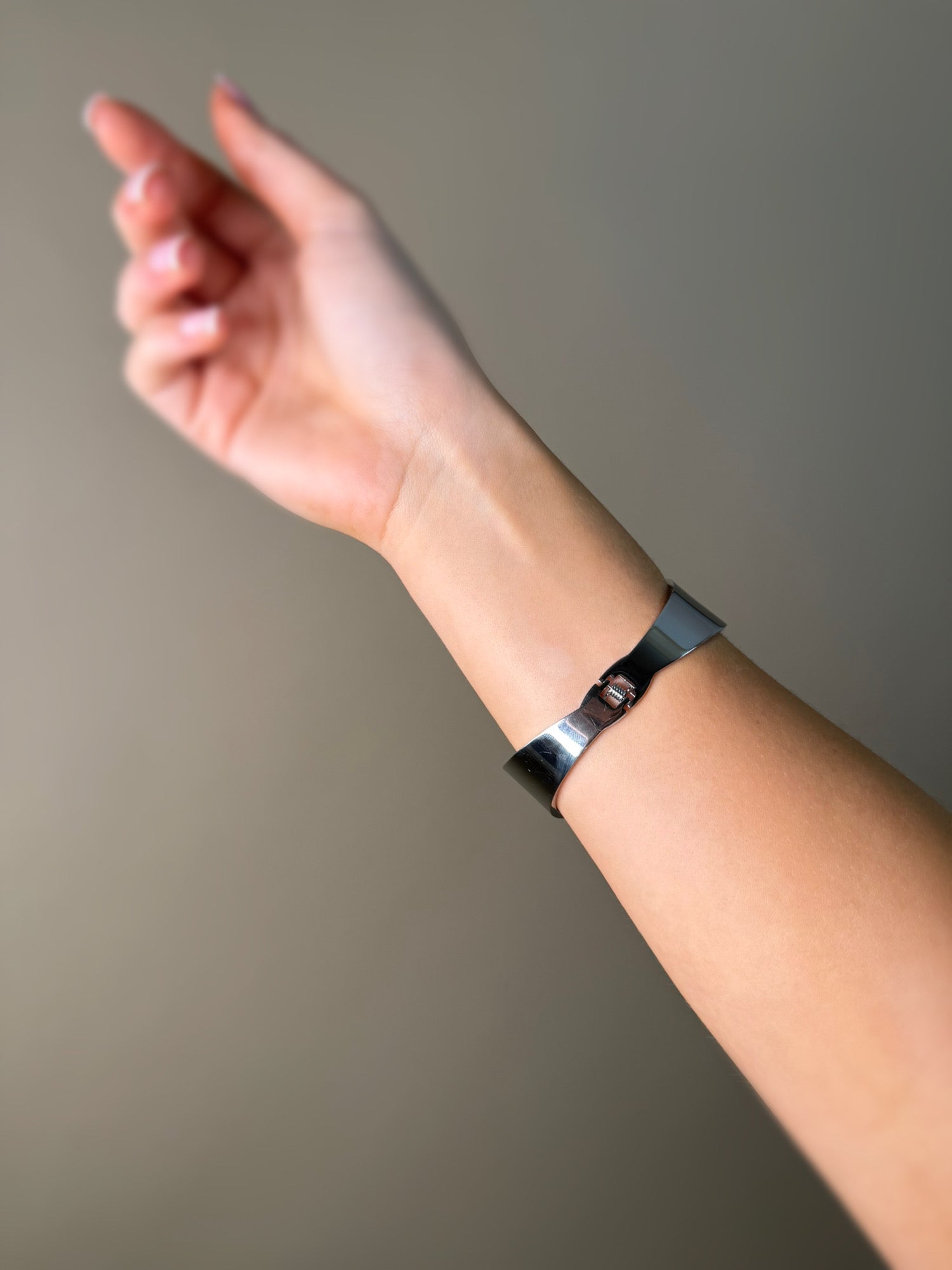 Laissez-vous séduire par l’élégance brute de ce bracelet manchette au design épuré et sculptural. Fabriqué en métal poli, il se distingue par ses courbes modernes et son aspect miroir qui capte la lumière avec intensité. Disponible en finition argentée ou dorée, ce bijou minimaliste transforme votre poignet en une véritable déclaration de style. Que vous le portiez seul pour un effet structuré ou en accumulation pour un look audacieux, il s’adapte à votre allure avec caractère.