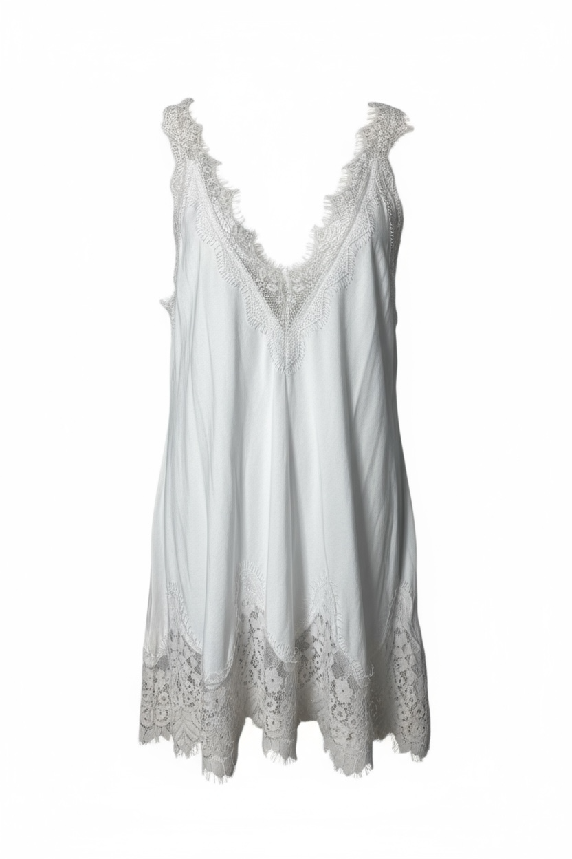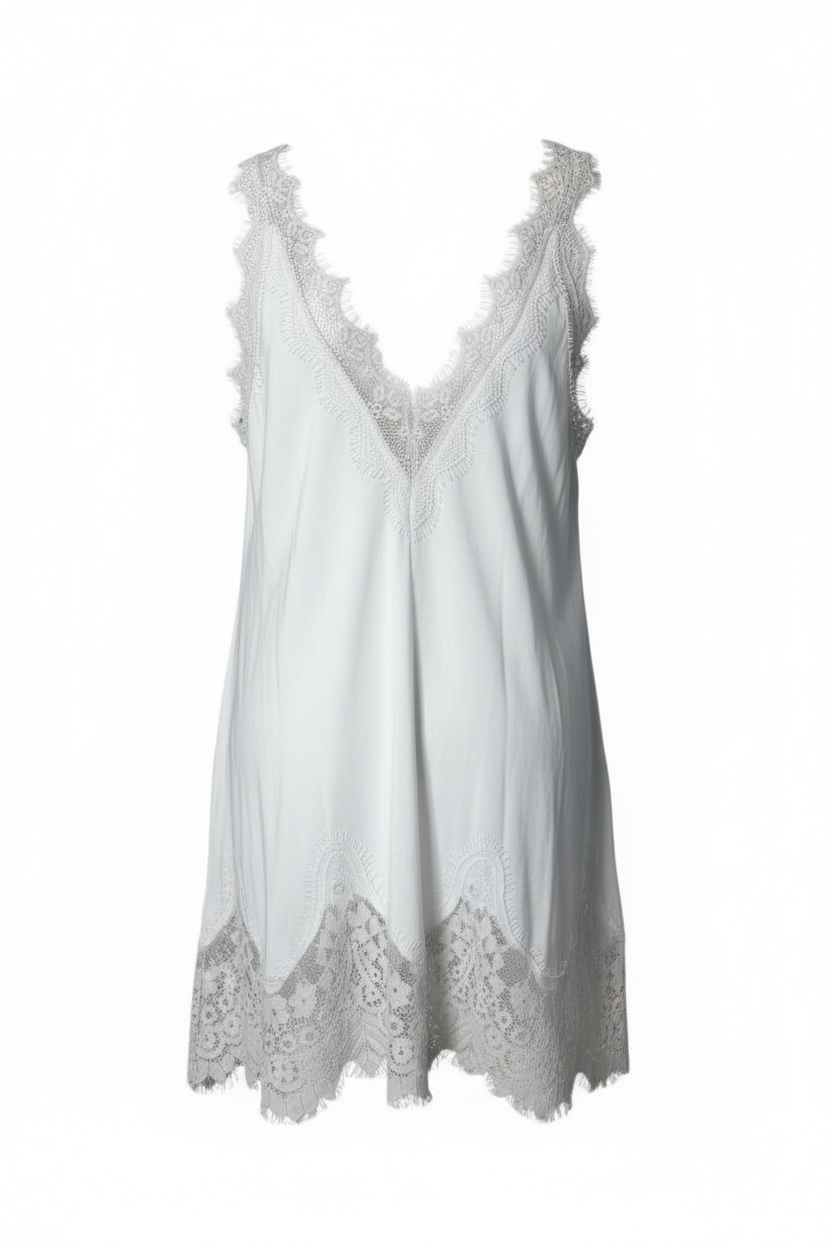 • Finition dentelle raffinée sur le col en V et l’ourlet du bas pour une touche glamour.