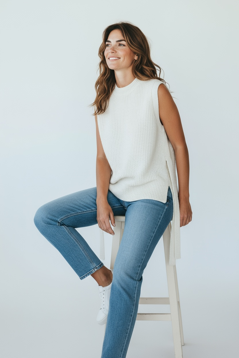 Un essentiel revisité pour les femmes qui aiment jouer avec les superpositions et affirmer leur style sans en faire trop. Ce pull sans manche écru est une pièce raffinée et moderne, pensée pour sublimer vos tenues avec subtilité.