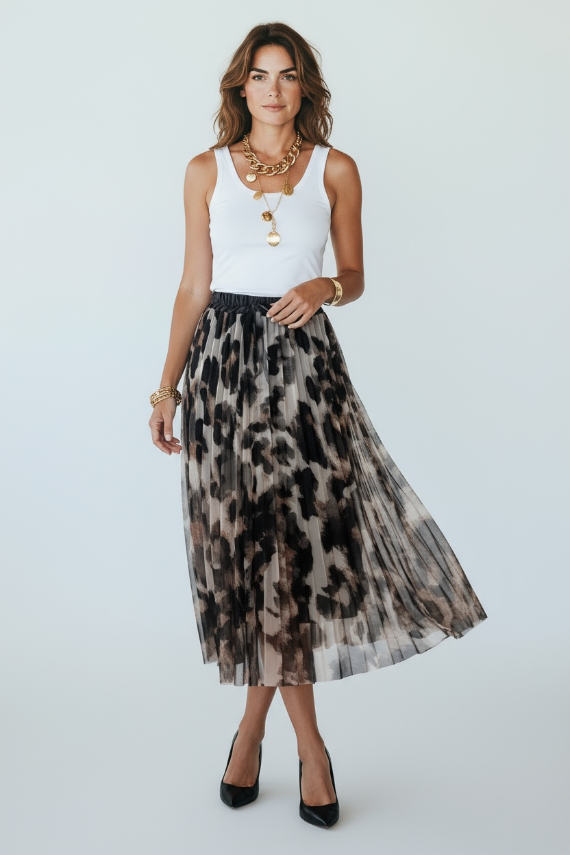 Affirmez votre style avec cette jupe longue fluide au motif léopard intemporel. À la fois chic et confortable, elle épouse toutes les silhouettes grâce à sa taille élastique extensible.